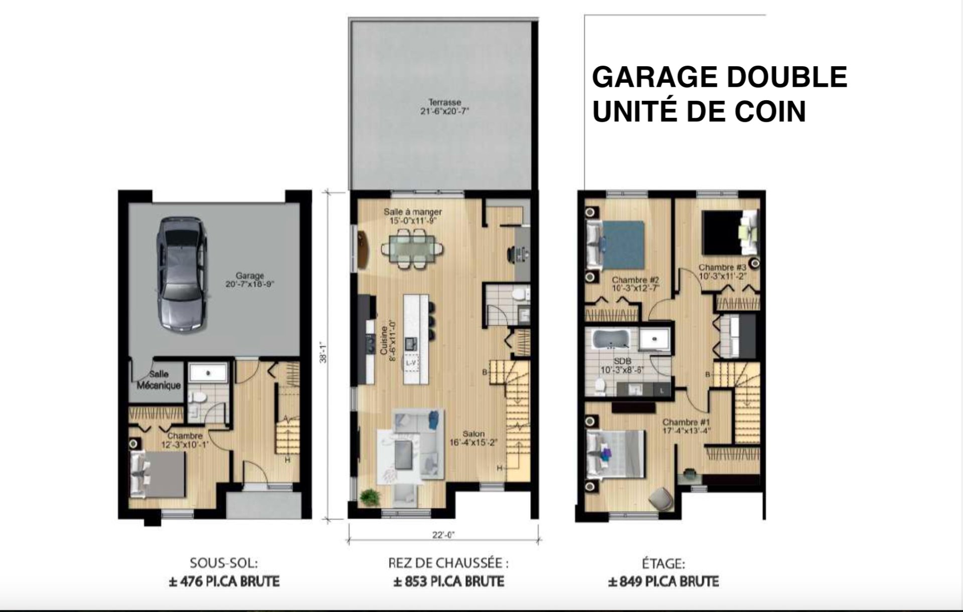 | Salon | Rez-de-chaussée | 16.4x15.2 P | ||