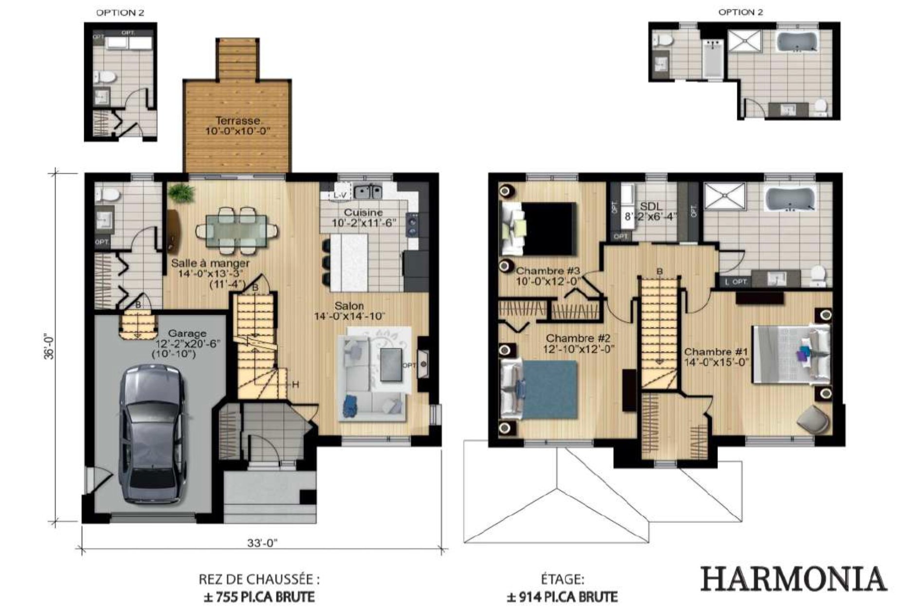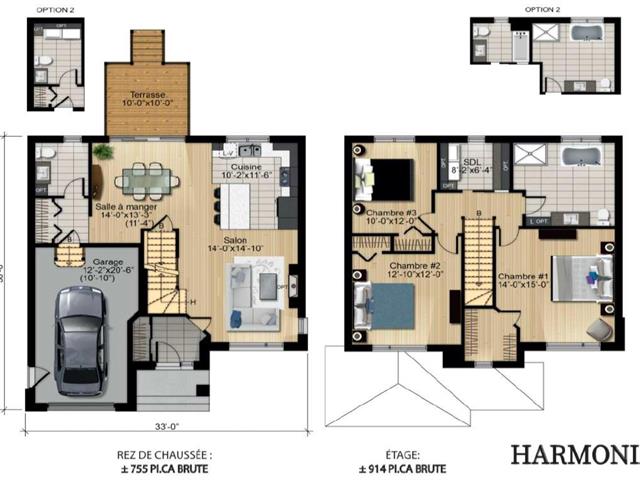 3 chambres et 1+1 salles de bain (possibilité d'ajouter une