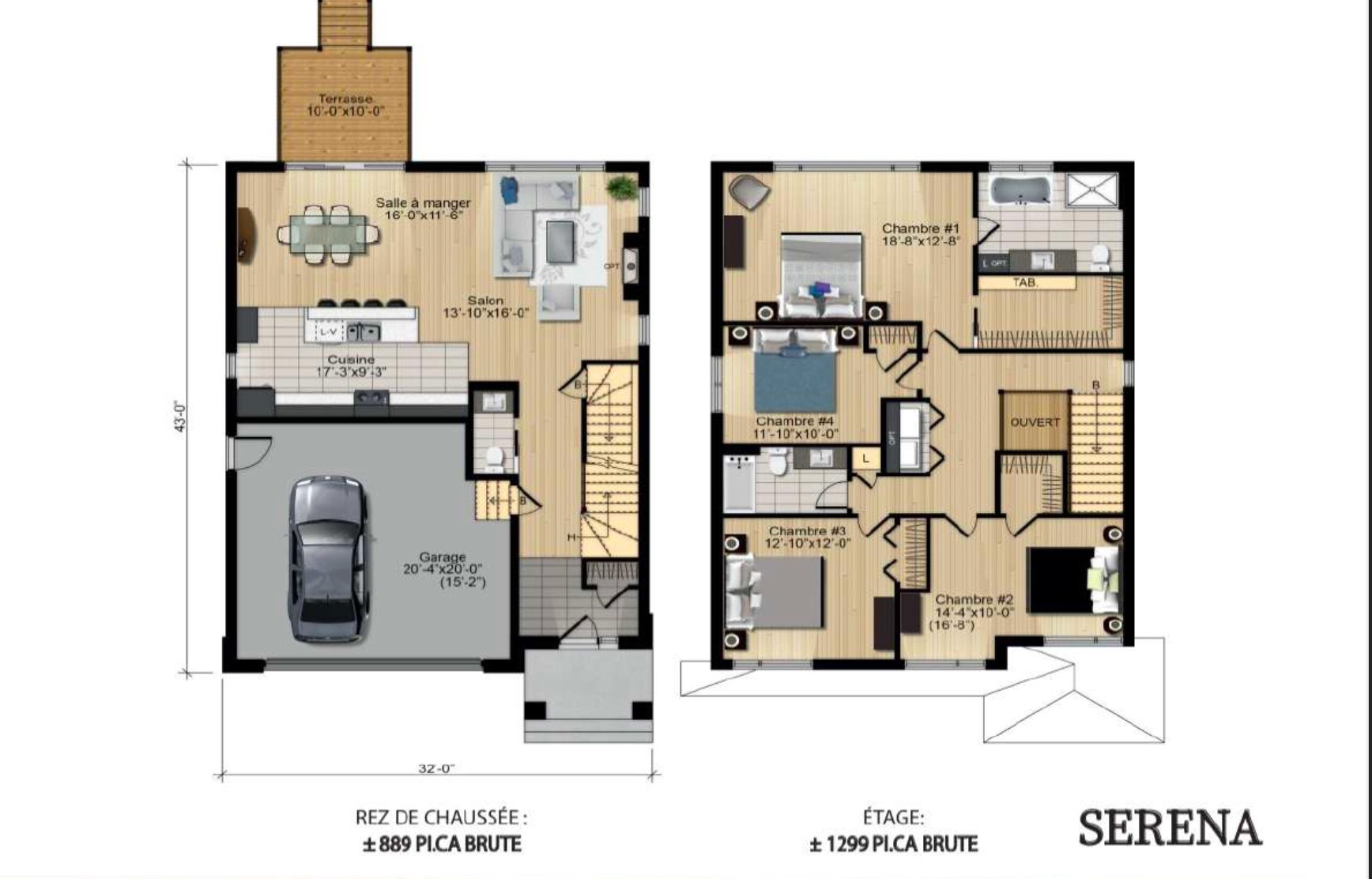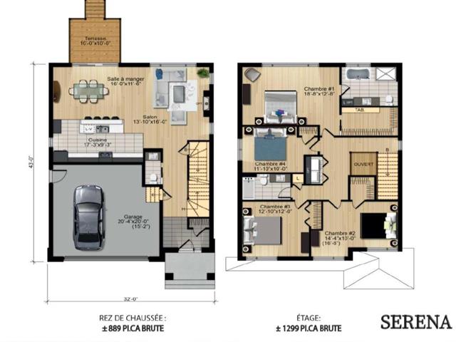 | Chambre à coucher principale | 2ième étage | 18.8x12.8 P | ||