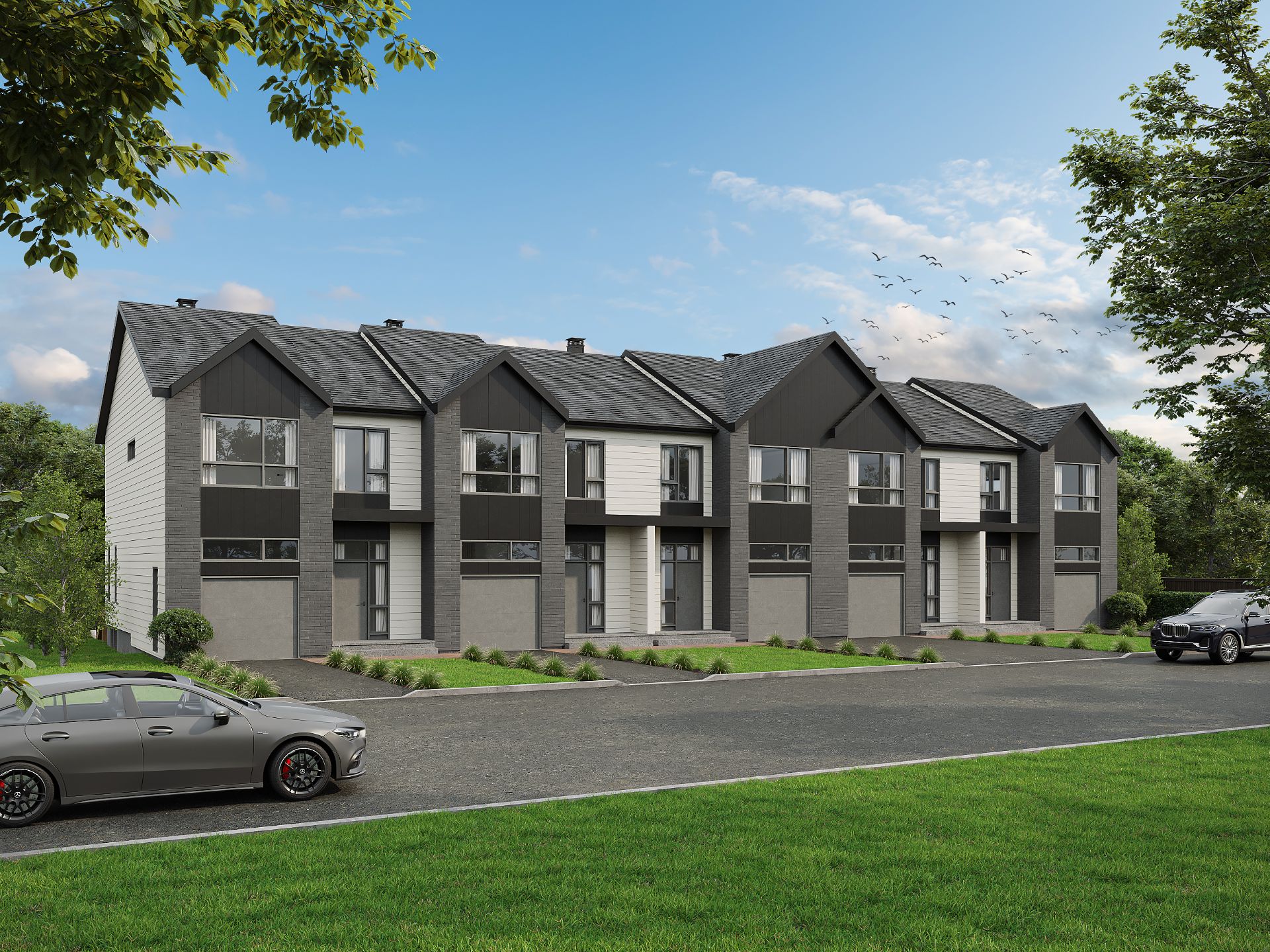 -Entrée d'auto en asphalte et terrain gazonné